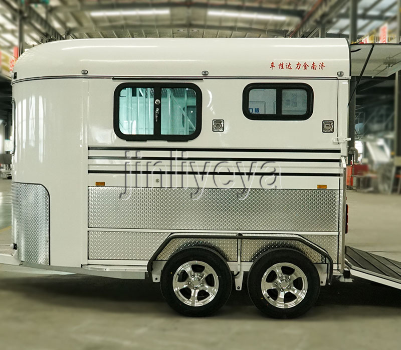 地板:地板一般采用防滑、耐磨且易于清洁的材料制成。防滑设计可防止马匹在运输过程中滑倒受伤;耐磨材料能承受马匹的体重和蹄部的摩擦;易于清洁的特性则便于在每次运输后对车厢进行彻底的清洗和消毒,保持车厢内部的卫生。