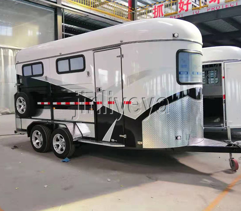 地板:地板一般采用防滑、耐磨且易于清洁的材料制成。防滑设计可防止马匹在运输过程中滑倒受伤;耐磨材料能承受马匹的体重和蹄部的摩擦;易于清洁的特性则便于在每次运输后对车厢进行彻底的清洗和消毒,保持车厢内部的卫生。