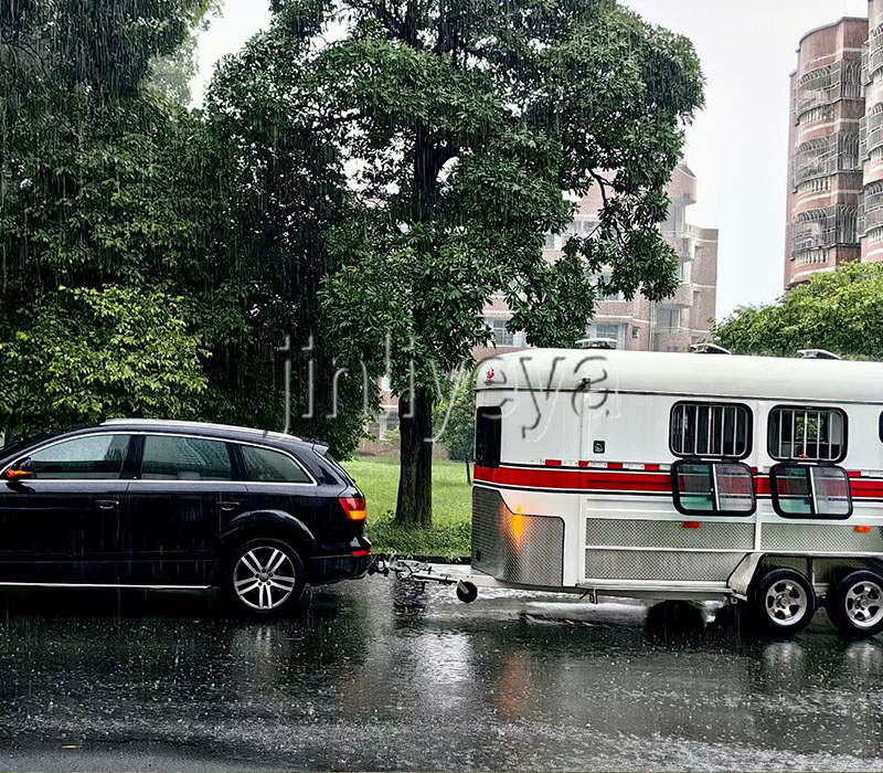 车厢:通常采用全封闭式或半封闭式设计。全封闭式车厢能为马匹提供更安全、稳定且受外界干扰小的环境,有效抵御风雨、寒冷等恶劣天气;半封闭式车厢则在保证一定防护功能的同时,具有更好的通风性。车厢内部一般设有分隔栏,可将空间分隔成多个独立区域,避免马匹在运输过程中相互碰撞、踩踏,保障马匹的安全。